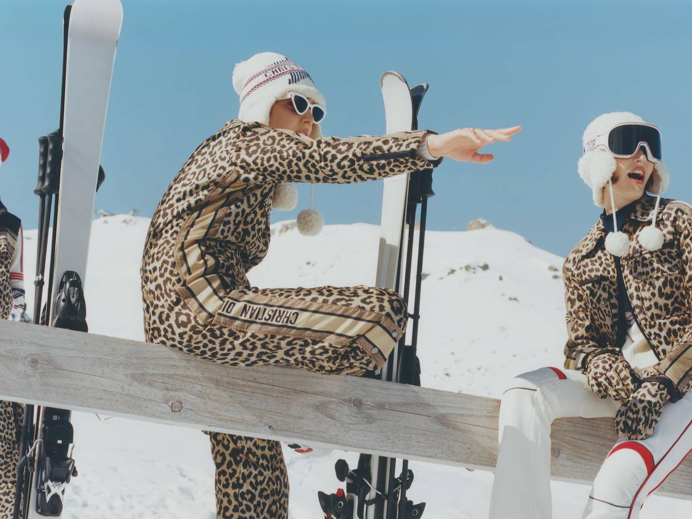 An ode to escape and the magic of the mountains, discover the playful campaign for the new 'DiorAlps' collection by Maria Grazia Chiuri, equally suitable for sports or for leisure. Models take to the snowy slopes in 'Dior Oblique' ski suits, 'Dior Star' knits - revisiting the House's lucky star combined with the "Christian Dior" signature enhanced by two horizontal stripes - après-ski-chic down jackets in the signature 'Mizza' leopard print and snow boots, fusing high-tech, fashion and fun.